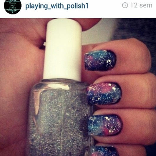 Noite meninas, hoje tem post de mani do instagram, a primeira a aparecer por aqui é a linda unha da nossa seguidora playing_with_polish1. Para ficar com as unhas perfeitas ela apostou no efeito galáxia.